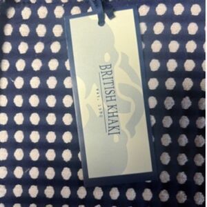 NWT British Khaki Navy Blue White Stretchy Polka Dot Mid Rise 3.5” Short with Pockets
