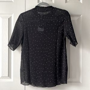 NWT Polka Dot Print Tailored Mock Neck Half Sleeve Top | Black & White | S M L
