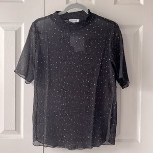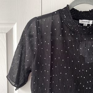 Brand New! Just released! Polka Dot Print Tailored Mock Neck Half Sleeve Top | Black w/ White Dots | S M L