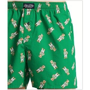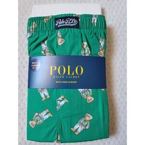 * Boxer: elastic waistband with woven "Polo RL" label at the front; single-button fly; allover Polo Bear print