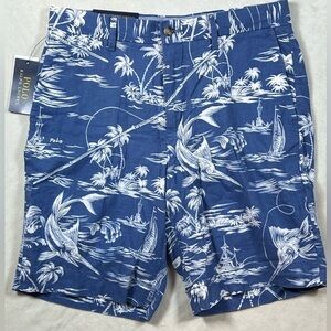 NWT Polo Ralph Lauren 29W 9” Inseam Classic Fit Linen Cotton Blend Navy Shorts