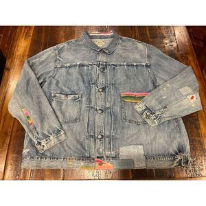 NWT Polo Ralph Lauren BIG TALL RENTON Striped Patch Denim Jean Jacket Mens 2XLT