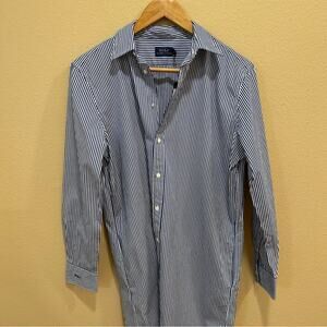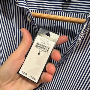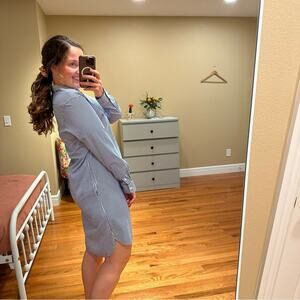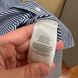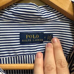 I love this super pretty new with tags Polo Ralph Lauren blue white striped cotton long sleeve collared button front mini dress
