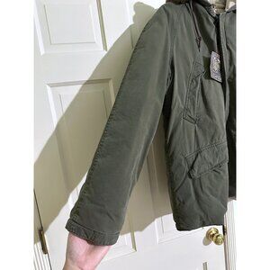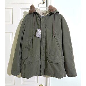 NWT Polo Ralph Lauren Down Puffer Coat Jacket Olive Green Lamb Fur Collar M