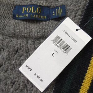 NWT Polo Ralph Lauren Embroidered Crown Cable Knit Cricket Sweater in Gray L