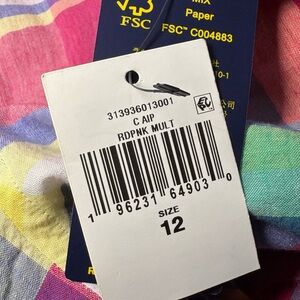 Charming madras plaid dress with a mix of vibrant colors. Features a cute waist tie and button-down front.