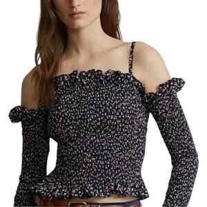 Polo Ralph Lauren Kezia Smocked Off-Shoulder Floral Top. Size Small. Navy multi floral print. Retail $348. Condition NWT.