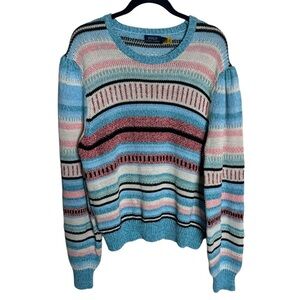 NWT Polo Ralph Lauren Linen Blend Striped Pullover Sweater Puff Sleeve size XXL