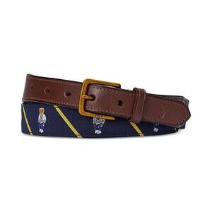 NWT Polo Ralph Lauren MEN'S BELT 38 Polo Bear Leather-Trim Belt