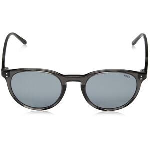 You're viewing a pair of stylish Polo Ralph Lauren PH4110 round sunglasses! These sunglasses feature a sleek black frame with grey mirror lenses, perfect for adding a touch of sophistication to any outfit. Grab them while they are still available!