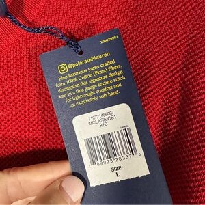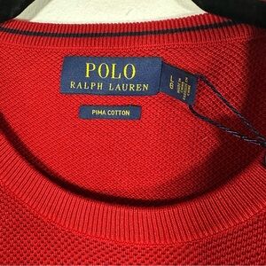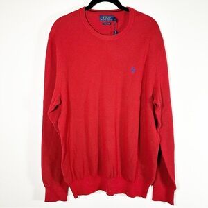 NWT Polo Ralph Lauren Pima Cotton Knit Red Crew Neck Sweater Size Large Pony