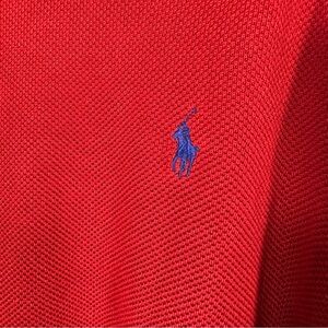 Features: 100% pima cotton - knit - pullover - polo pony on chest - classic red and navy colors - textured stitch