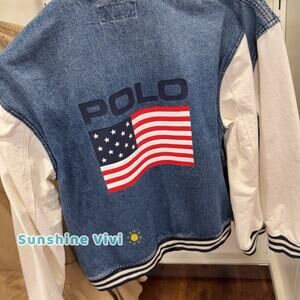 NWT Polo Ralph Lauren Women's DENIM Varsity BOMBER Jacket Blue medium