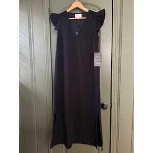 NWT Pomander Place Tuckernuck Black Flutter Sleeve Miko A-Line Maxi Dress Large