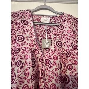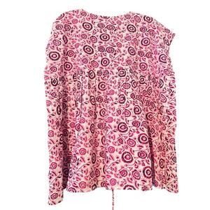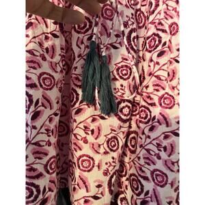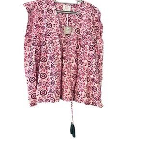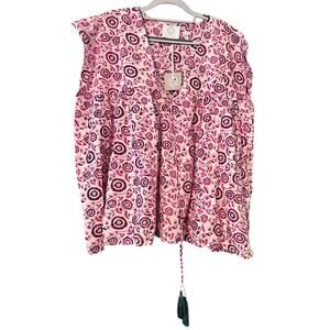 NWT Pomegranate Babydoll Top Peasant Blouse •XL• Fuchsia Flower Floral Tassels