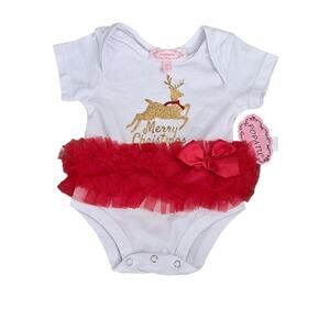 NWT Popatu Christmas White Red Gold Reindeer Tutu Bow Ruffle Bodysuit 12 Months