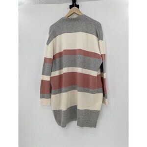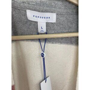 NWT Popsugar Striped Cardigan Sweater Long Sleeve Open Front Pockets Sz L Boho