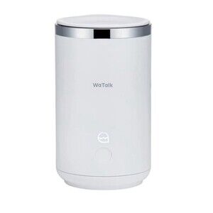 The device is compact, about the size of a small coffee mug, making it easy to carry and use anywhere.