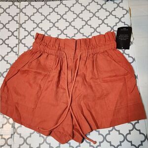 NWT Posee Zuri Drawstring Linen Shorts in Orange Size Small