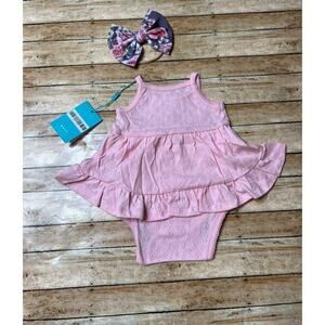 NWT Posh Peanut Cotton Candy Pointelle Ruffled Bodysuit Dress 0-3m with Bow