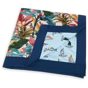 From the Tropicana Collection. The signature, one-of-a-kind baby luxe patoo™ blankets in a tropical print and a reversible sailboat print feature the triple-layer making this baby blanket slightly weighted.