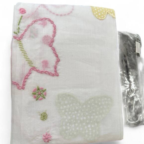 NWT Pottery Barn Curtain Panel Dot Butterfly Pink Green Yellow Sheer 84” Pole
