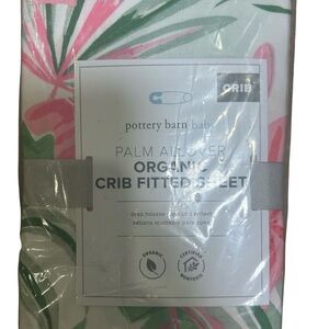NWT Pottery Barn Kids Allover Palm organic cotton crib sheet pink floral print