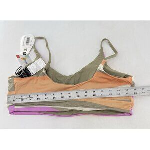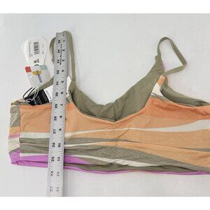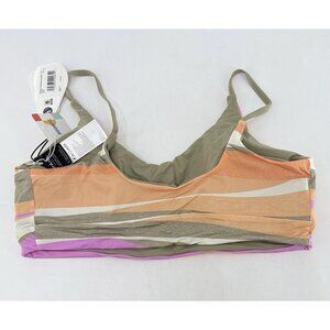 The NWT PrAna Women's Willow Falls Reversible Swim Top in Waves is a stylish and sustainable swimwear option for women. This top features a multicolor striped pattern and is designed for a size L with a small cup size. It is perfect for beach days, bohemian vibes, and is made from eco-friendly materials. The reversible feature adds versatility to the top, allowing you to mix and match with different bottoms for a variety of looks. Hand wash only to maintain its quality, this swim top is a must-have for any woman looking for a fashionable and eco-friendly swimwear option. New with tags. Please feel free to ask any questions.