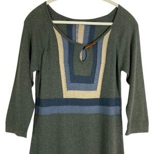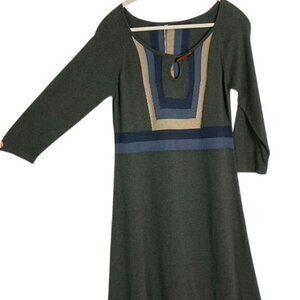 NWT PrAna Yarrah Dress, Medium, Dark Gray Blue Tan Organic Cotton, Toggle