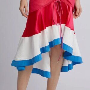 NWT Prabal Gurung Binod Colorblock Striped Fuchsia Hi-Lo Midi Skirt M $1,795