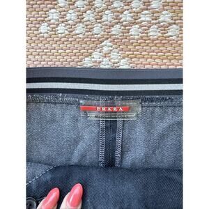 The NWT Prada Designer Denim Pleat Skirt in Black is a stylish and trendy piece of women's clothing. Made from denim fabric, this skirt features a pleated design that adds a touch of sophistication to any outfit. With the renowned brand name of Prada, this skirt is sure to be a high-quality and fashionable addition to any wardrobe. Perfect for adding a chic and contemporary element to any ensemble, this skirt is a versatile and timeless piece for any fashion-forward woman.