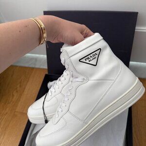 NWT Prada High Top Sneakers White Leather Lace Up Sz 41