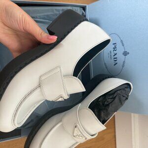 NWT Prada Loafers Spazzolato White Leather 40.5 Enameled Triangle Logo