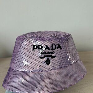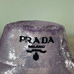 NWT Prada Logo Bucket Hat Purple Allover Sequins Embellished Medium
