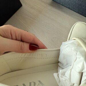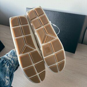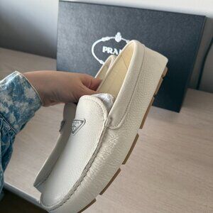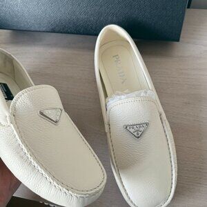 NWT Prada Men's Slip-on Loafers White Leather Logo Plaque Sz 7