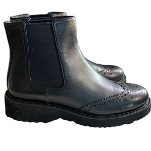 NWT Prada Size 8 Black Leather Chelsea Wingtip Chunky Boots EU 38.5