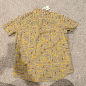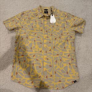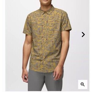 NWT Prana Stimmersee Camp Shirt Short Sleeve Button Down Mens Medium Slim Fit Msrp $69 official color pollen retro bloom