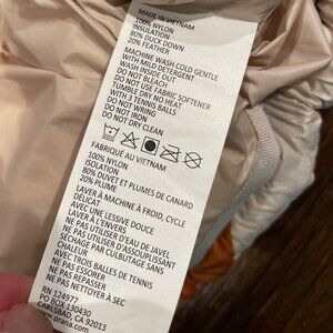 100% nylon. Insulation: Duck down/feathers. Machine wash.