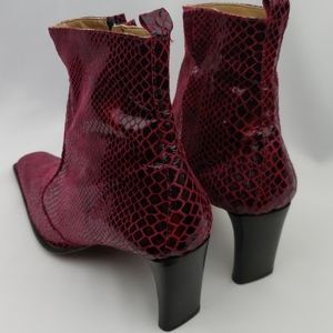 AWESOME NWT Pratesi Cranberry/Black Colored Leather Snakeskin Design Anle Boots Size 37.