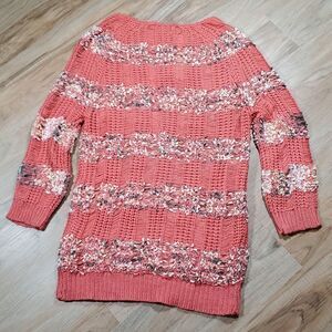 🔹️🔺️NWT Prato Coral & Cream Loose Knit 3/4 Sleeve Loose Knit Sweater Medium