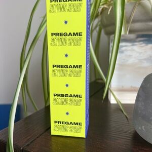 Achieve a flawless look with Pregame Setting Spray. This blue and yellow spray ensures long-lasting makeup wear while keeping your skin hydrated and fresh.