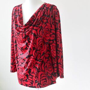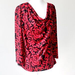 From Prelude, this NWT red and black floral long-sleeve cowl-neck top in size Medium is to die-for!