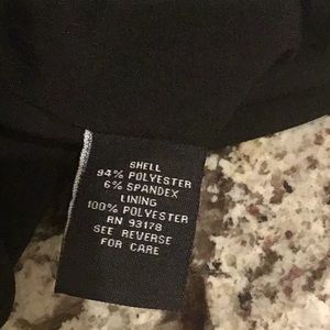 Black knit blazer. Size 10. Very comfortable- you could wear it all day long. Cute front button detail. Slit in back still tacked together.