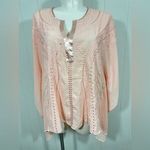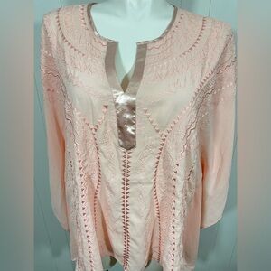 NWT Premise Studio Women’s Pink Bat Sleeve Top Embroidered Tunic Size 3X
