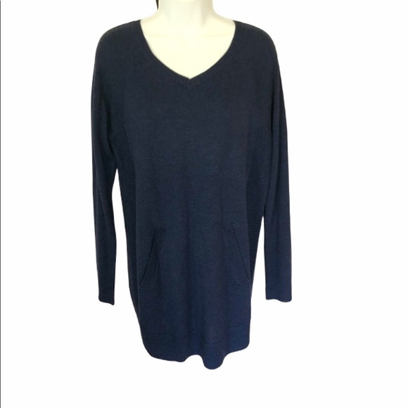 Premise cashmere blend v-neck tunic sweater. New with tags! Gorgeous blue heathered design. Has front kangaroo pocket. V-neck. Extremely soft and stretchy. Rib design under arms and along bottom of sweater, as well as sleeve cuffs. Perfect for fall!! Pair with leggings and boots. Size small. Measures approximately 18 inches across chest from armpit to armpit, 31 inches in length, and sleeves 18 1/2 inches from armpit to cuff. Same day ship!! Excellent condition.