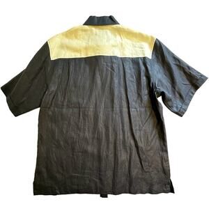 NWT Prestige Navy White Floral Embroidered Linen Button Down Shirt 2XL