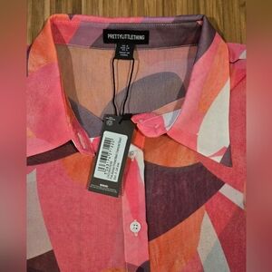 💚 NWT Prettty Little Thing Colorful Abstract Button-Up Blouse
