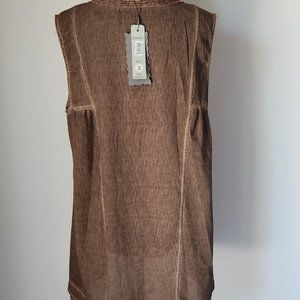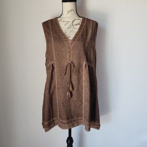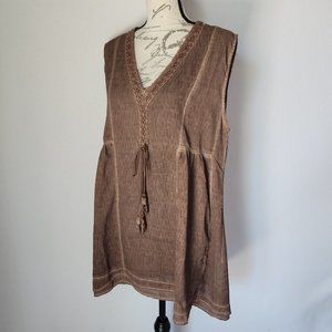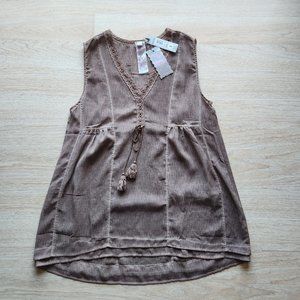 NWT Pretty Angel Linen Blend Lace Trim V-Neck Peplum Top Sleeveless Brown