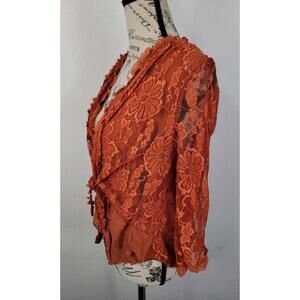 NWT Pretty Angel Top Sz Large Lace Overlaid Semi Sheer Orange Rust Boho Sheer