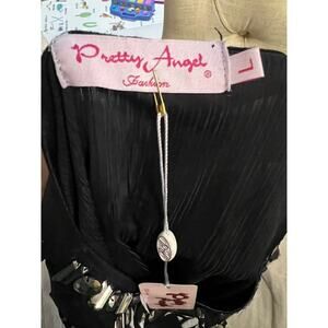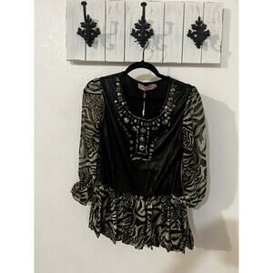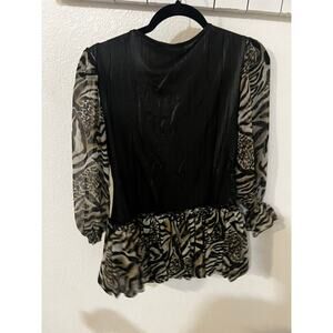 NWT Pretty Angel zebra & black top w sheer sleeves dressy beaded size Large
